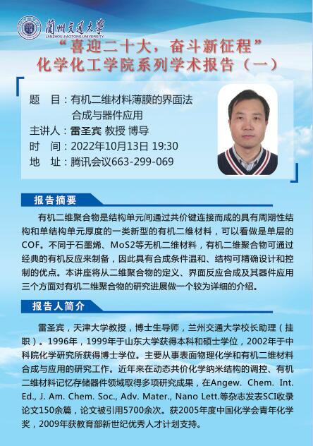报告题目:有机二维材料薄膜的界面法合成与器件应用