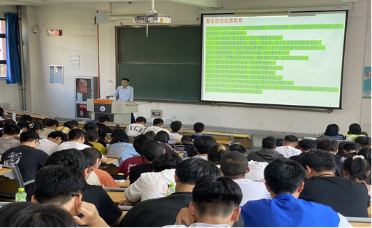 其次,李老师对《学生手册》中的相关规定和要求进行了重点解读。介绍了违反校规的处分类型,处分的时限、撤销处分的程序等。从学习和生活两个角度,介绍了与各位同学有关的规章制度。强调以下几个方面:1、学习上要按时出勤,旷课会受到相应的纪律处分。2、课程考试时,一定不能抱有侥幸思想,考试违纪的后果非常严重,影响到学生的学位申请甚至就业。3、在校住宿期间,应遵守宿舍管理规定,不能使用违规电器,不能留宿他人,更要注意宿舍财务安全和人身安全。4、在校生活中要时刻提高警惕、防范网络电信诈骗、禁止参与网络赌博,以及参与“帮信”犯罪等违法活动。5、强调同学们要有正确的政治立场,要了解国家的民族宗教知识,增强自身的法律意识,文明上网,谨言慎行参与网络留言,同时更要警惕非法组织和邪教的网络渗透,增强个人防范意识。