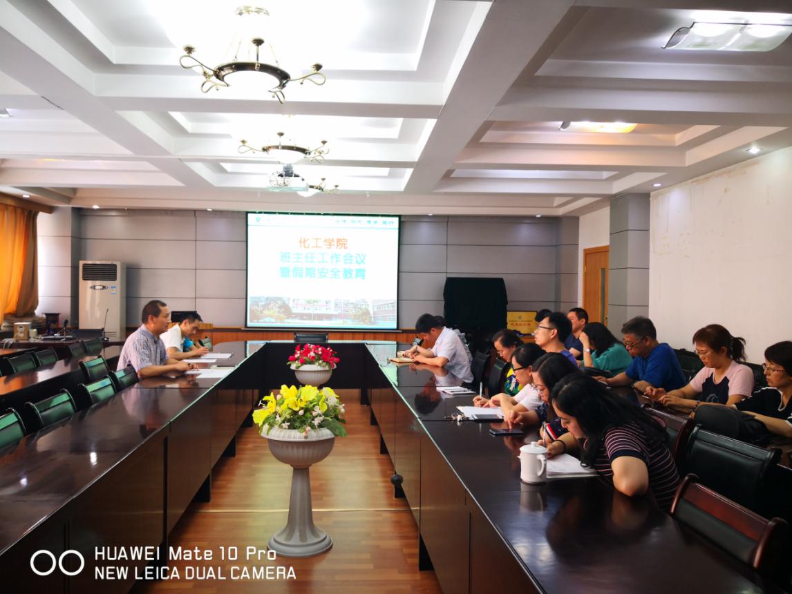 7月8日下午15:00,化学与生物工程学院在二楼会议室召开了2018-2019学年第二学期班主任工作总结会议暨假期安全教育。会议由查鹏堂副院长主持,全体班主任、辅导员参加了本次会议。