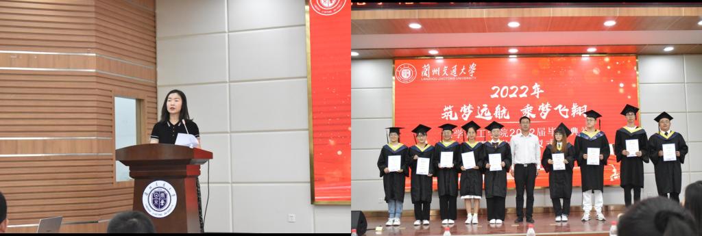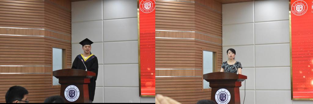 研究生代表贾富强同学回顾了研究生三年的学习生活,向辛勤培育自己的老师表示衷心的感谢。本科生代表牛国庆同学在发言中表示要用绚烂青春书写兰交大青年的爱国情怀,用过硬的本领践行学子的使命担当,积极投身于祖国建设的新征程中,与学院共进步,与时代同行,开创精彩绚丽的人生。