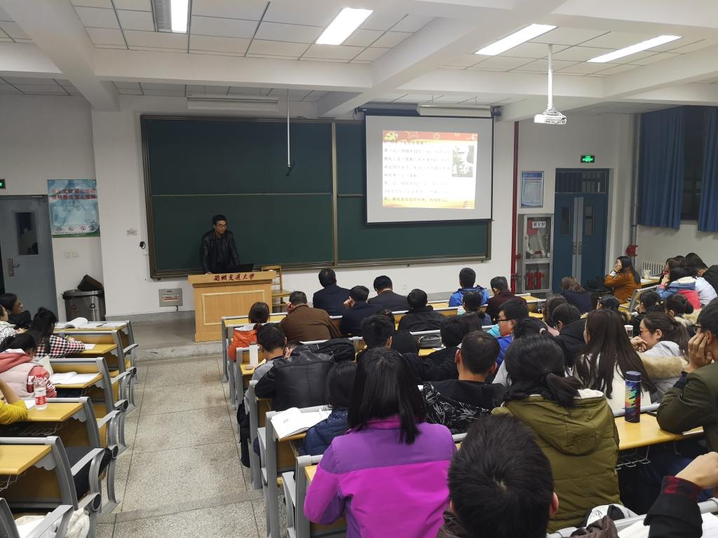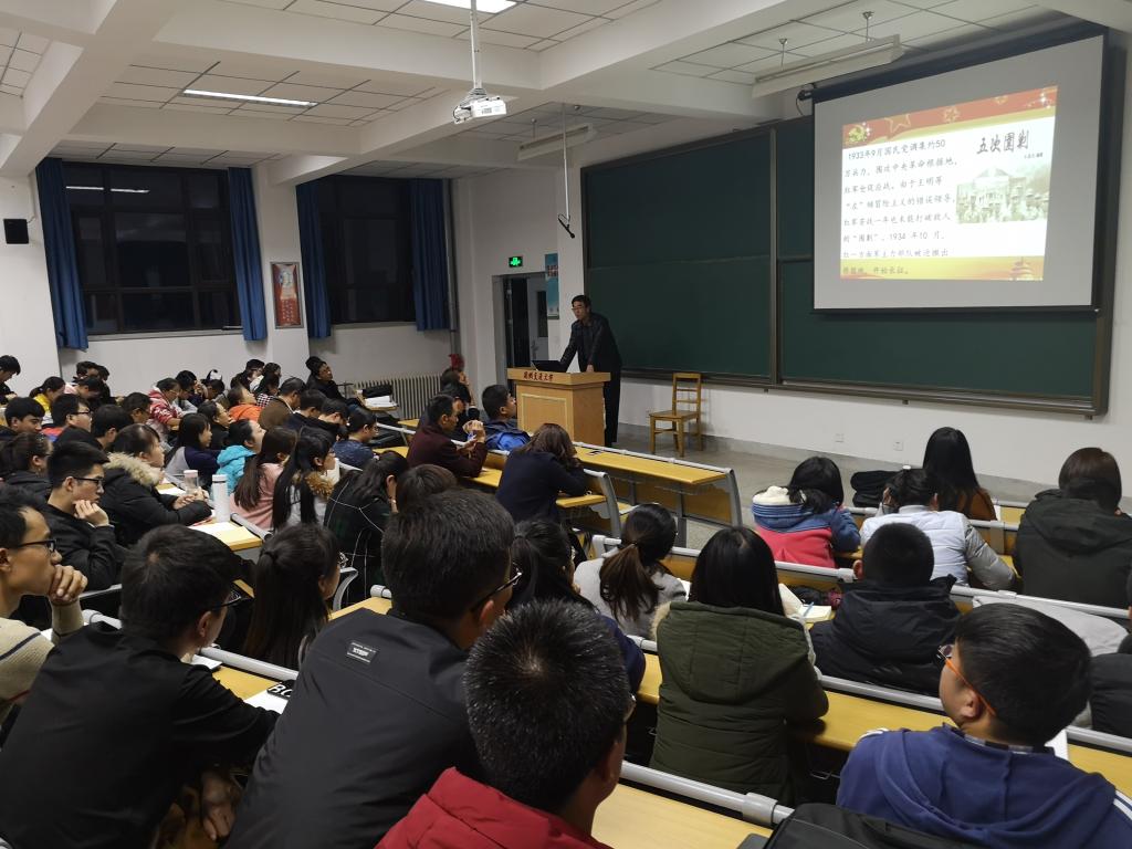 2018年11月14日晚,化学与生物工程学院党委书记薛林贵教授为全体教工和学生党员做了“讲规矩,守纪律”专题报告。共220人聆听了报告会。