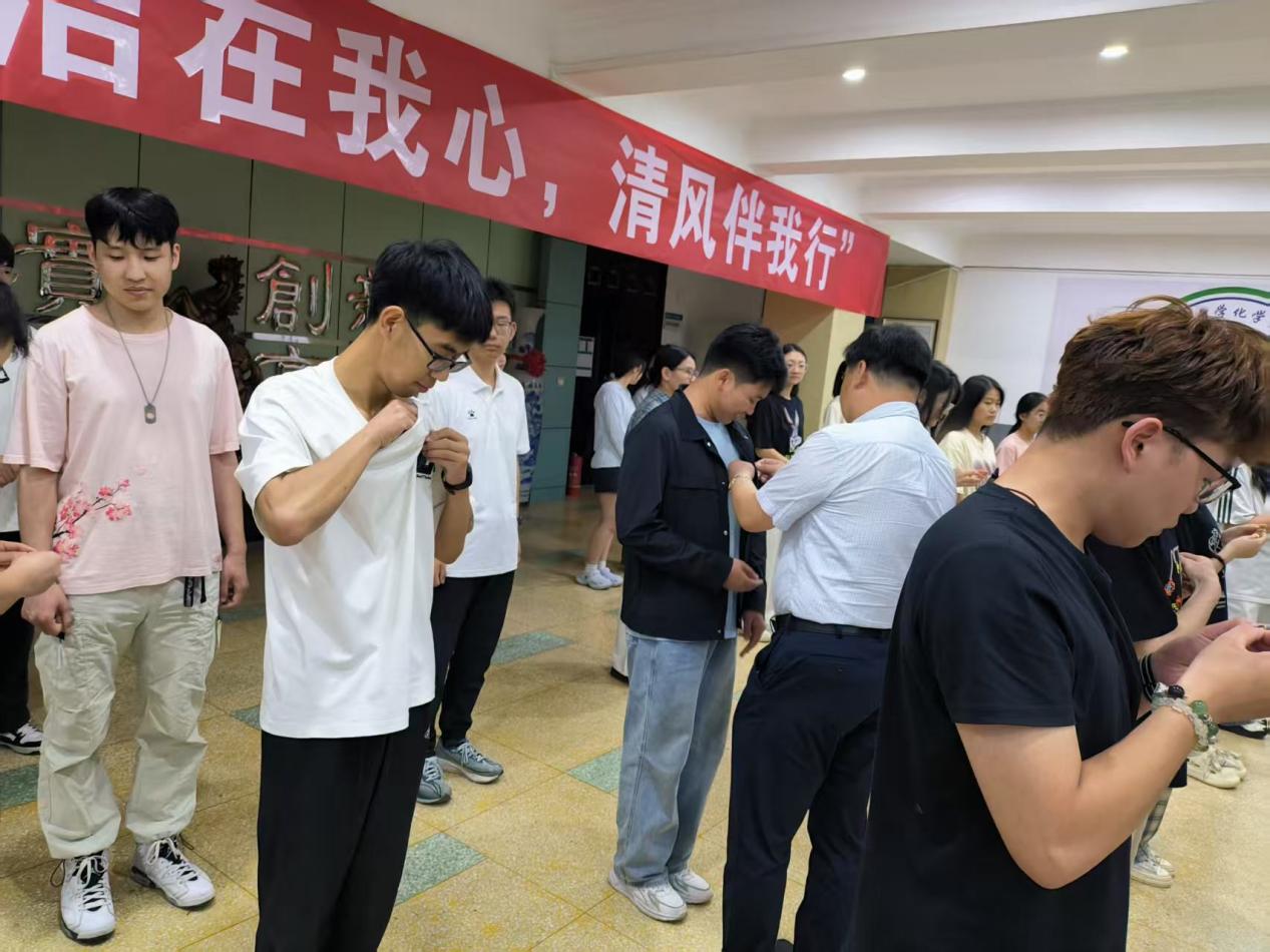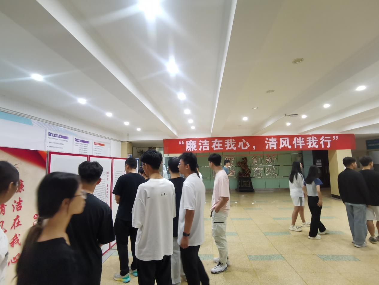 宣誓仪式圆满结束后,学院紧接着开展了主题为 “廉洁在我心,清风伴我行” 的廉洁教育活动。在工作人员的有序组织下,参会人员有序参观了位于学院一楼大厅的廉洁文化展板,认真聆听并深入学习了展板上一个个发人深省的廉洁故事,心灵在这些故事的浸润下得到了进一步的净化与升华。