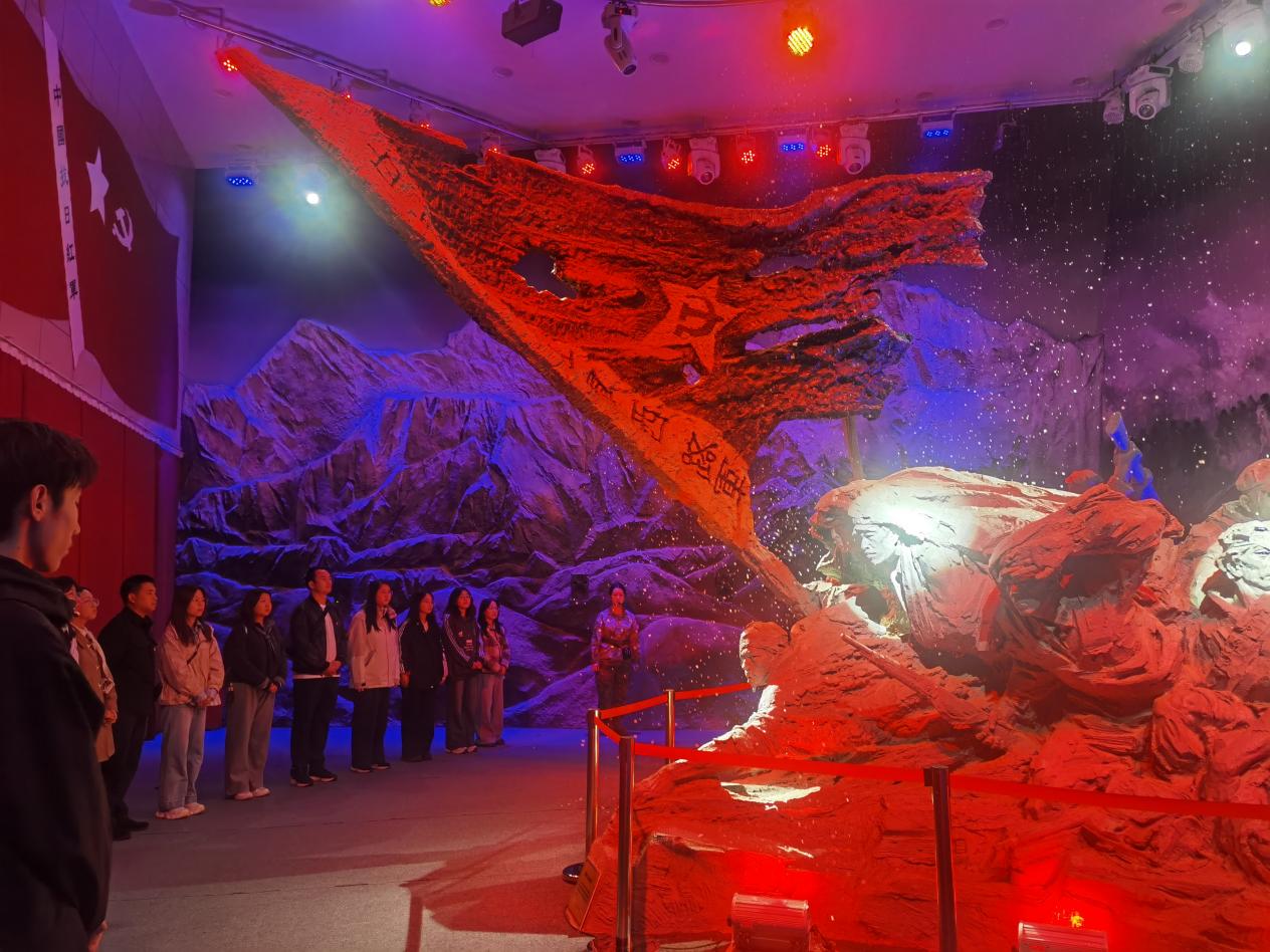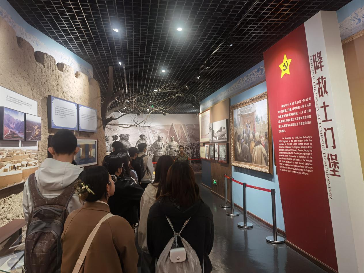 步入主展馆,恢弘的主题雕塑《血铸忠魂》映入眼帘,红军战士群像巍然屹立,目光坚毅,仿佛仍在守望这片用生命守护的热土。展馆通过“挥师进河西”“突围干柴洼”“阻击横梁山”“血战古浪城”等八大板块33个单元,系统展示了红九军在古浪境内浴血奋战的悲壮史诗。大家循着“突围干柴洼、阻击横梁山、血战古浪城”的历史脉络,认真聆听红九军将士在十天激战中歼敌2000余人却付出2400余人伤亡的壮烈事迹,对“古浪三战,九军折半”的历史悲歌有了更深刻的体悟,真切感受了革命先辈浴血奋战、舍身忘死的英雄气概。