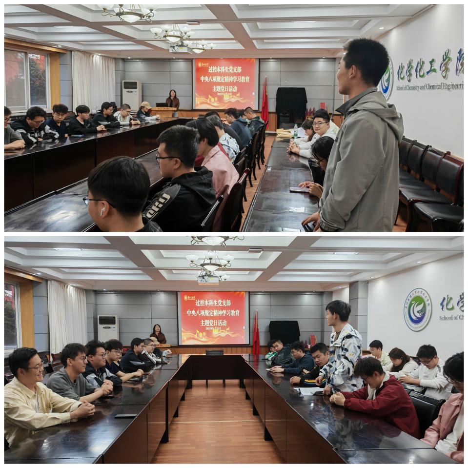 党的作风就是党的形象,关系人心向背,决定党和国家事业的成败。为深入贯彻中央八项规定精神学习教育,持续引领党员们筑牢信仰之基、补足精神之钙、把稳思想之舵,4月15日,化工学院过程装备与控制工程本科生党支部在学术厅开展中央八项规定精神学习教育主题党日活动。支部全体党员共同深入学习中央八项规定精神的相关内容,在理论学习和互相交流中以学铸魂、以学增智、以学正风、以学促干。