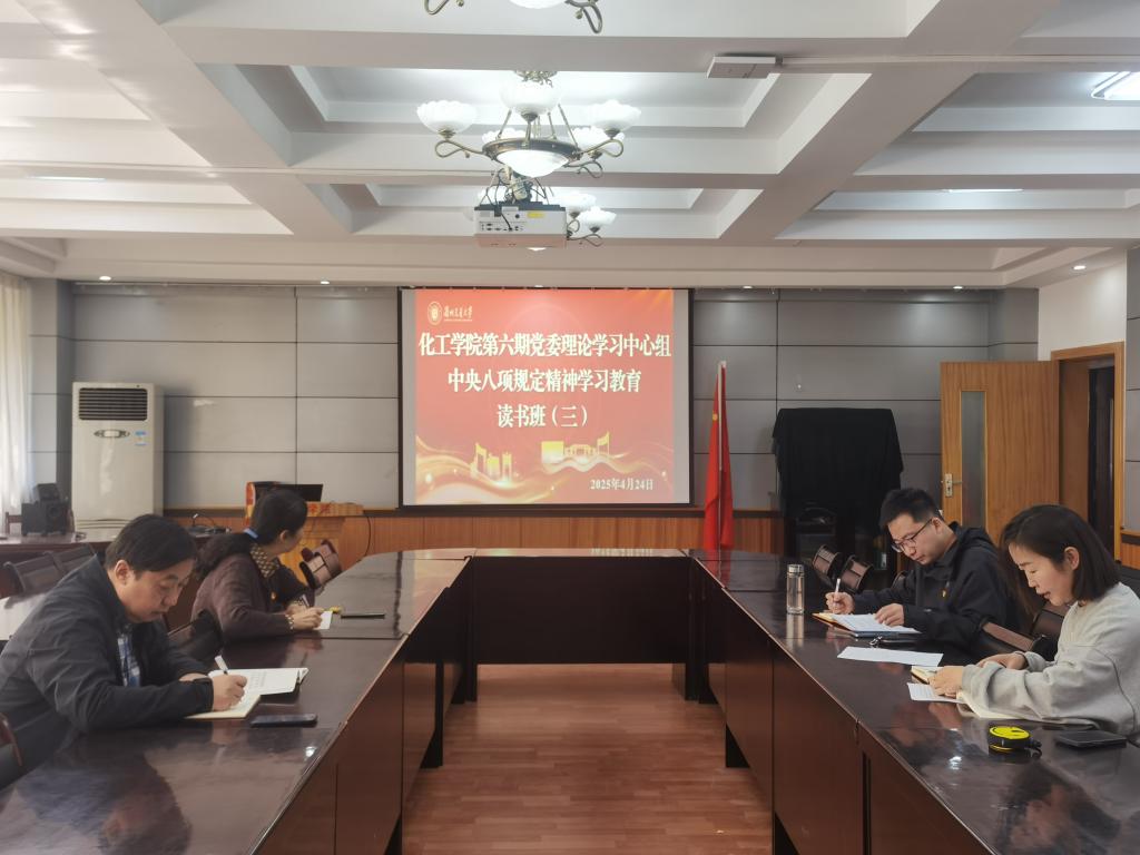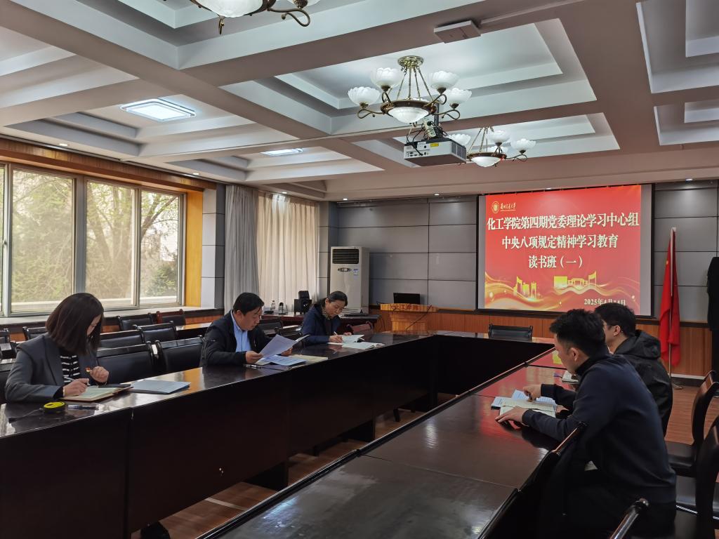 为深入贯彻落实中央八项规定精神,持续加强作风建设,化工学院党委于4月14日、4月18日、4月24日分阶段开展了深入贯彻中央八项规定精神学习教育读书班集中学习。学院领导班子成员积极参与,通过集中学习与交流研讨,进一步深化了对中央八项规定精神的理解与践行。