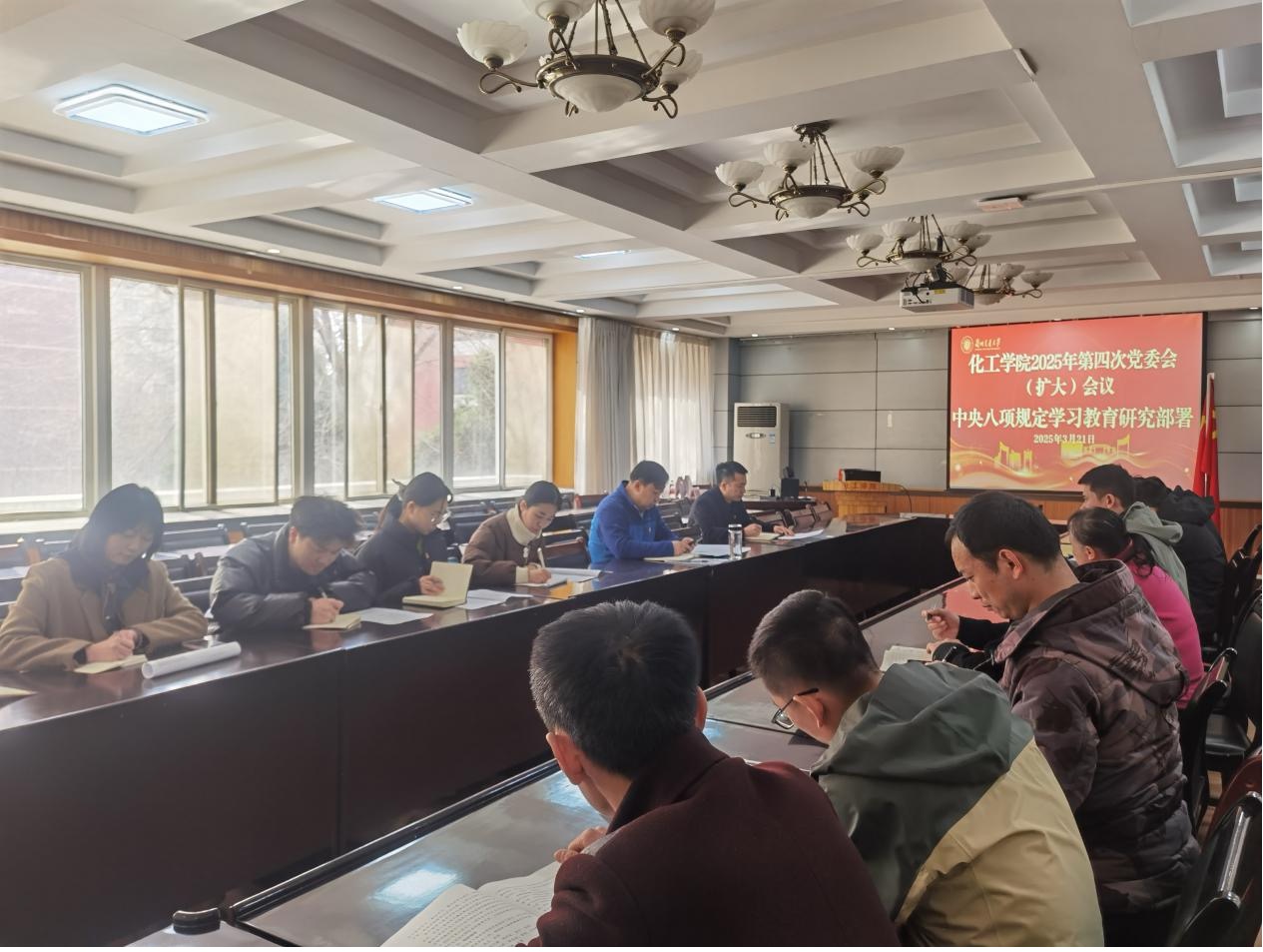 会议认真学习了中央党的建设工作领导小组会议精神和《兰州交通大学开展深入贯彻中央八项规定精神学习教育工作方案》,传达了学校2025年第六次校党委常委会会议精神,审议通过了《化学化工学院开展深入贯彻中央八项规定精神学习教育工作方案》。