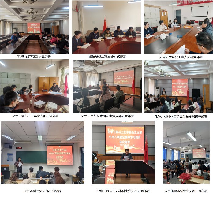 会议要求学院10个基层党支部迅速响应,对中央八项规定精神学习教育同步动员部署。坚持把理论武装贯穿始终,学院领导干部领学带学促学,学院领导班子举办读书班,制定《化工学院学习教育读书班实施方案》,领导班子成员结合工作实际开展交流研讨,每人至少发言1次。党支部通过“三会一课”、主题党日等形式,组织党员、干部认真学习,突出抓好新提拔干部、年轻干部、关键岗位干部的学习教育。