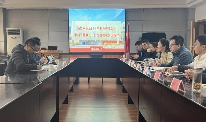 2025年3月14日下午,玉门千华制药有限公司董事长李剑平应邀莅临我院进行校企合作交流指导。化学化工学院院长赵丽主持会议,出席座谈会的还有学院副院长安宁、各系室主任及教师代表等。