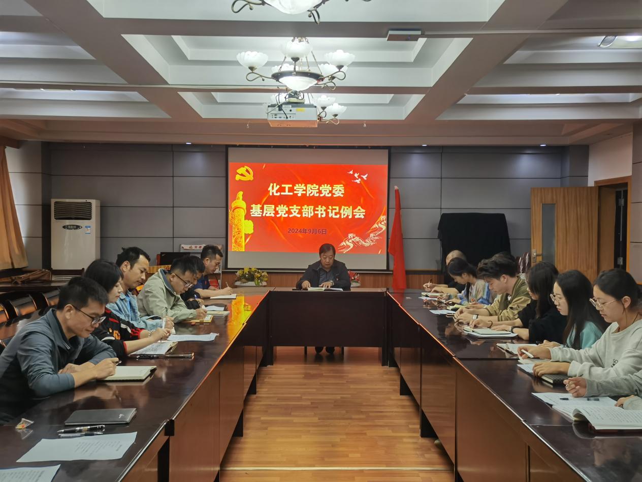 新学期为了更好的开展支部工作,进一步加强基层党组织建设,以高质量党建引领学院高质量发展,2024年9月6日上午,化工学院党委召开基层党支部书记例会,会议由党委书记吴卫主持,党委副书记金江磊、全体支部书记参加会议。