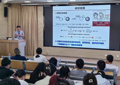 报告结束后,刘培念教授细致耐心的回答了师生关于有机小分子在肿瘤免疫治疗领域开发的实验技术问题,并为师生们分享了肿瘤免疫治疗领域的应用展望。