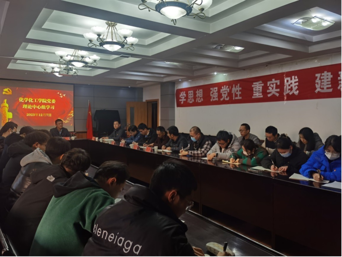 2023年12月7日,化工学院理论中心组学习在学院学术厅召开,校党委副书记贡力到会巡学旁听并指导,院党委委员、组织员参加会议,科级干部、党支部书记及学生党员代表列席会议。