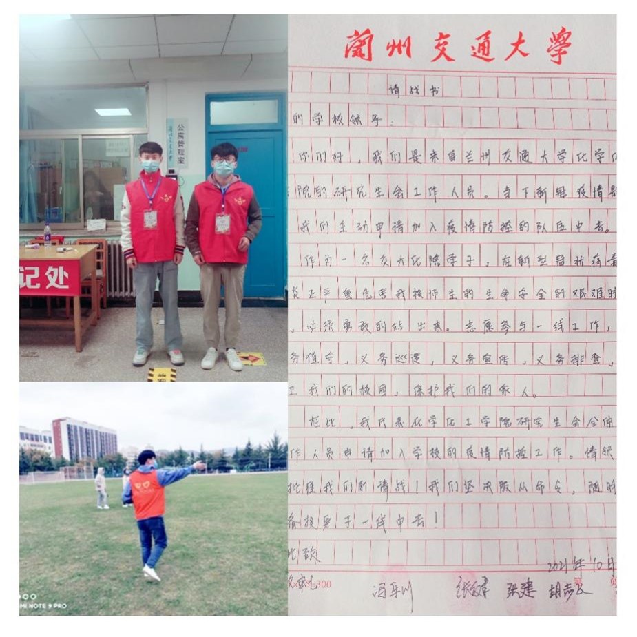 正值霜降,金城兰州在寒流之中依然生机盎然,然而一场突如其来的新冠疫情让这座美丽的城市突然按下了暂停键,也打乱了研究生们井然有序的科研与学习生活。在新的考验之下,化学化工学院研究生在学院领导带领下,和全体硕导一起团结一致,全力配合学校的疫情防控工作,共同建立起封堵病毒的坚实屏障。