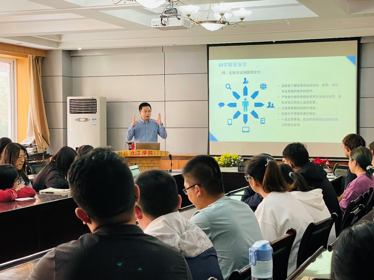 最后,安宁主任就化学化工学院研究生新生重点须知的培养环节、选课、开题、中期答辩、论文送审等几个方面进行了系统的讲解与梳理,着重强调了化学实验室安全管理的规章制度,并通过多个具体实例向同学们传达了遵守实验室安全制度的重要性。