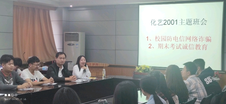 2021年6月16日,我院党委书记管永红老师,参加其联系班级应化1801班召开的防诈骗主题班会活动。
