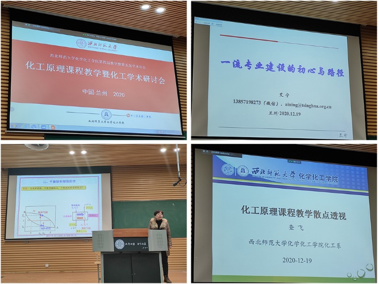 2020年12月18日至21日,在西北师范大学召开了“化工原理课程教学暨化工学术研讨会”。本次会议坚持“立德树人”目标,聚焦新工科一流课程建设,着力提升化工原理课程教学质量。化学与生物工程学院副院长董秀延和化学工程与工艺专业负责人王良成带领化工系相关教师参加了会议。