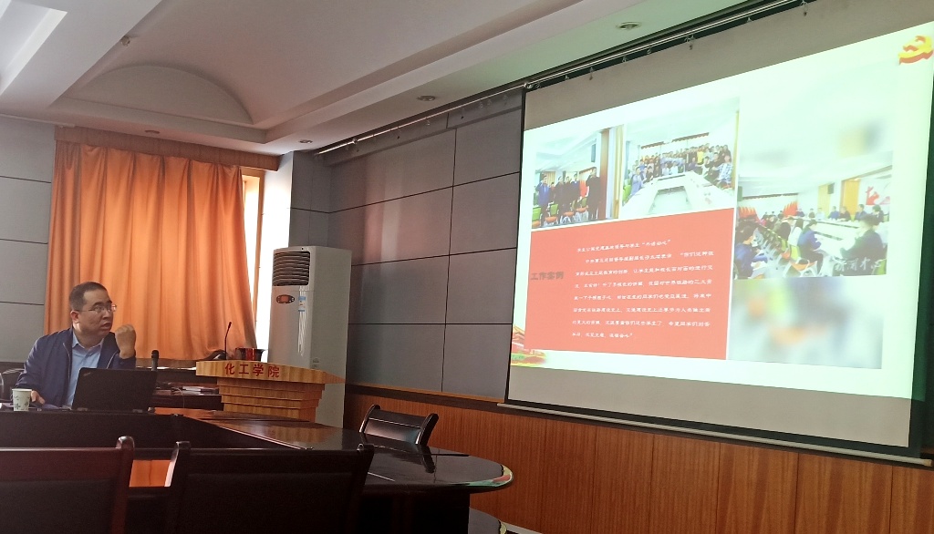 我院董文魁院长介绍了学院基本情况,从“历史沿革”,专业建设、学科学位、教学科研和今后的发展等各个方面的工作情况作了介绍。之后,查鹏堂副院长介绍了学院党建与学生工作情况,最后,双方围绕着党建思政、专业建设、人才培养、师资队伍建设、安全管理、科研工作开展和学生工作等方面展开了热烈的探讨与交流。会后,学院领导陪同赵金铎书记参观了学院化工实验室。