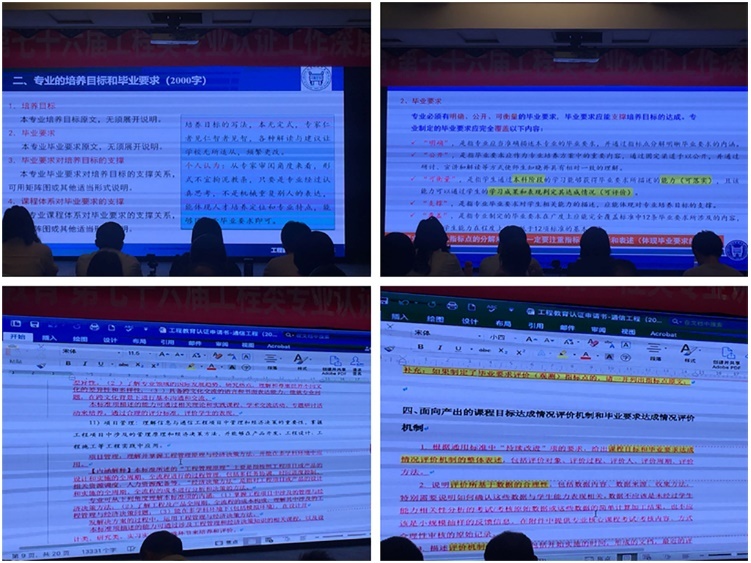 与会专家以专题讲座、案例点评的形式介绍了《工程教育改革新形势下专业认证与专业建设》、《关于认证的进展与新形势下的新要求》、《专业认证的理念与标准的解析及申请书撰写技巧》、《自评报告的撰写要点与准备工作》、《基于OBE视角下的人才培养方案的修订关键点剖析》及申请书撰写技巧等方面的内容。