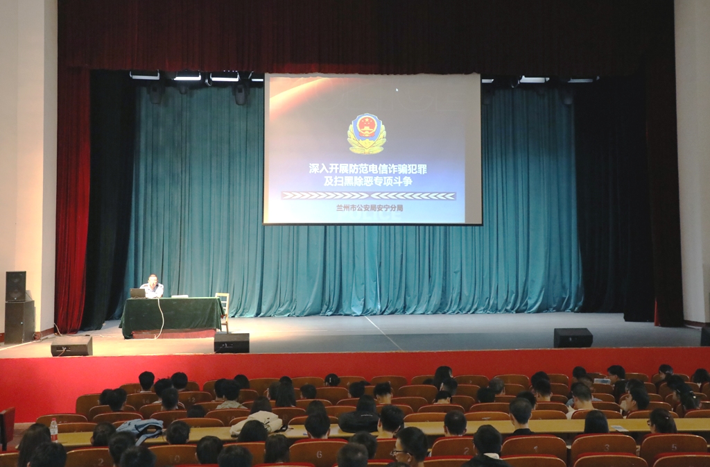 为推进校园网络贷款(套路贷、裸贷等)治理工作深入开展,贯彻落实好国家和甘肃省关于校园不良网络贷款的系列安排部署;同时为了有效遏制电信网络诈骗违法犯罪、校园贷高发势头,提高广大师生的安全防范意识和财产安全意识,5月23日下午2:30,化工学院邀请兰州市公安局安宁分局刑警大队张晓飞警官和学校保卫处林溪老师在学校大礼堂开展了“防电信诈骗不良网贷和校园安全”专题教育报告会。会议由查鹏堂副院长主持,学院全体本科生、研究生、辅导员及专业教师共900余人聆听了讲座。