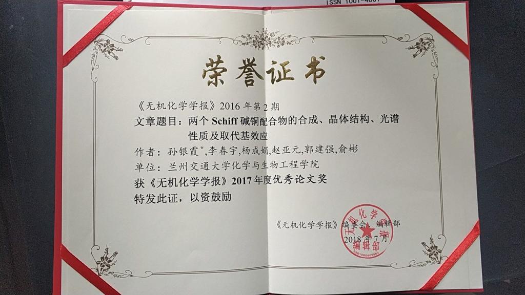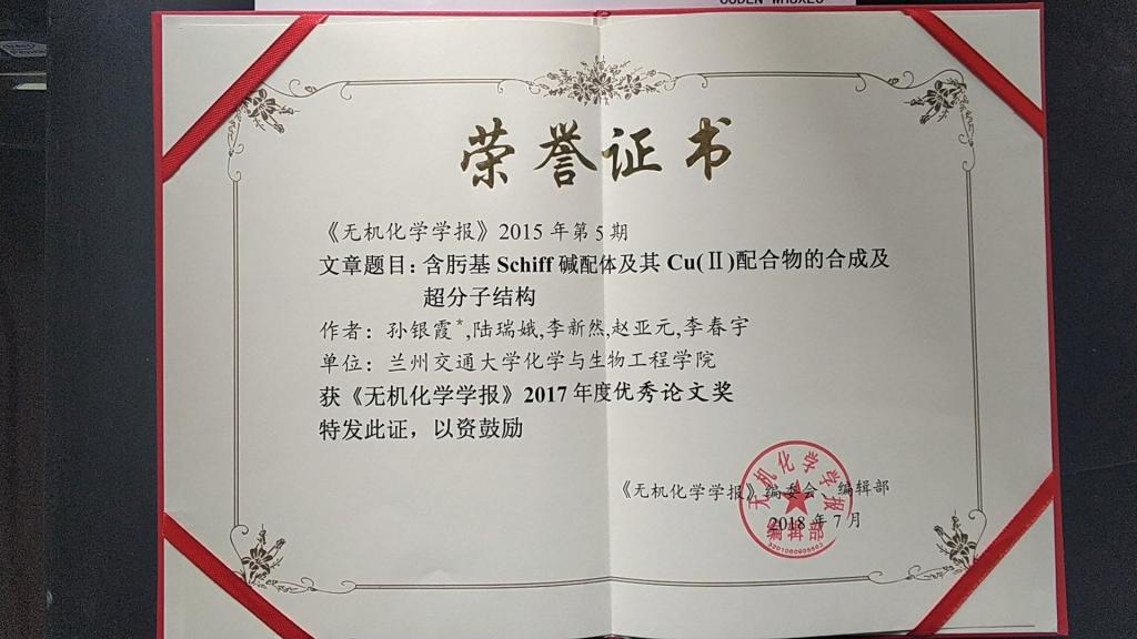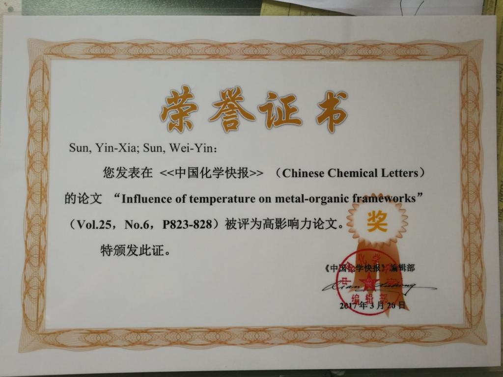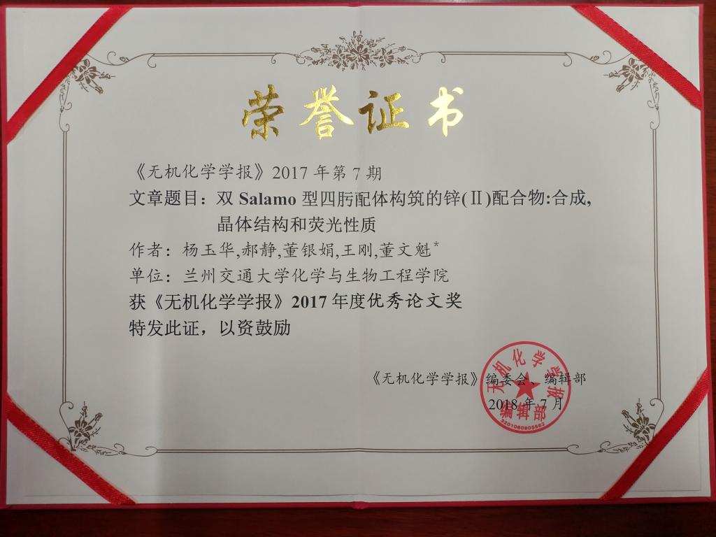 化学与生物工程学院近年来真抓实干,苦练内功,学院整体科研水平大幅提升,学科实力和论文质量均获得了同行和期刊的认可与关注。继“化学”学科进入ESI全球排名前1%后,又传捷报。我院董文魁教授和孙银霞教授为通讯作者的共5篇SCI论文分别被《无机化学学报》和《中国化学快报》评为“优秀论文”和“高影响力论文”。