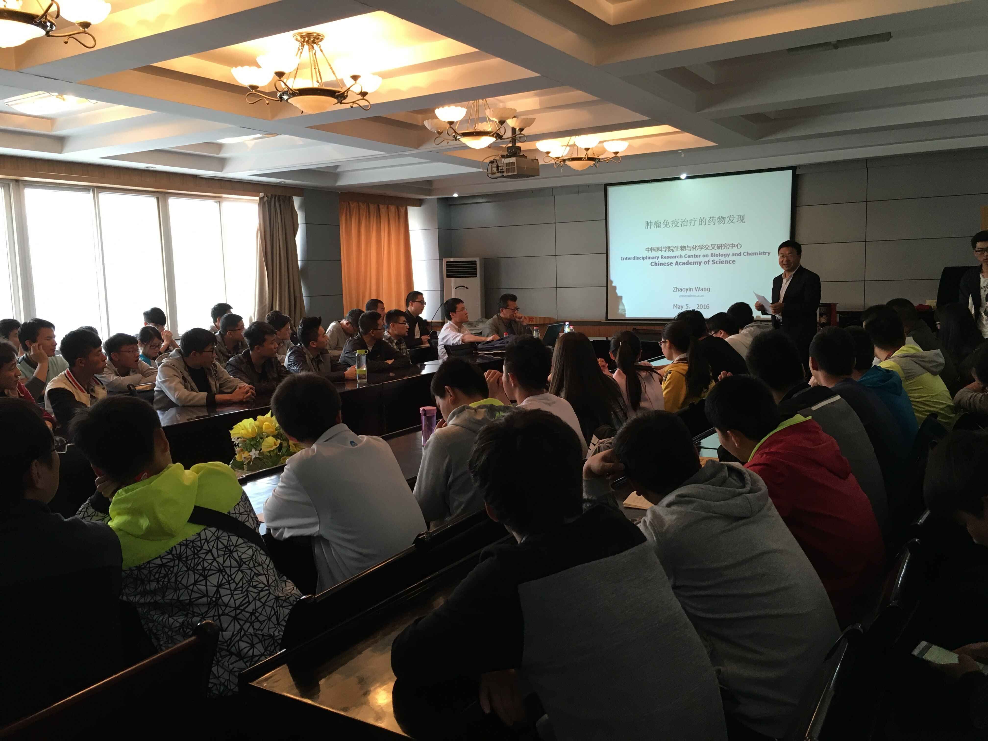 王召印、张耀阳研究员的报告受到到场师生的热烈欢迎,现场气氛十分活跃。通过此次报告,我院学生对中国科学院生物与化学交叉研究中心的研究方向表现出了浓厚的兴趣,主动咨询报考中心研究生事宜,极大的促进了我院学生考研积极性。