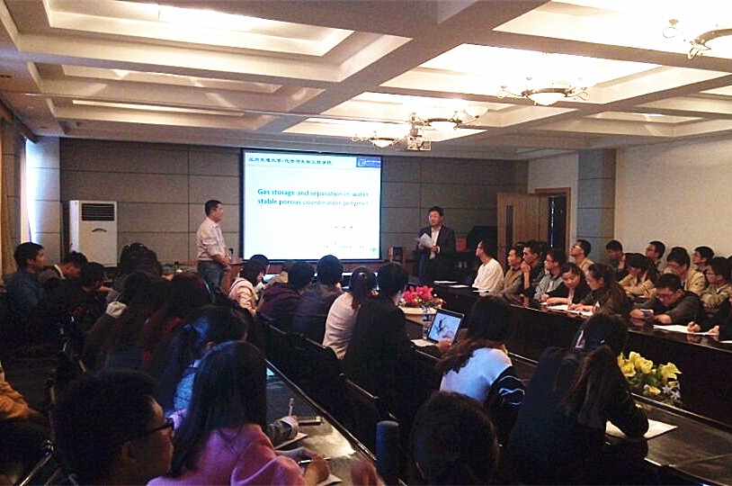10月13日上午,南京工业大学材料化学工程国家重点实验室的段金贵教授与化工学院部分师生在学院学术厅举行座谈会,就高校化学化工学科建设的情况以及高等教育领域内教学与科研工作的经验进行了广泛、深入的交流。下午4:30-6:30,段金贵教授作了题为“高稳定孔性配位聚合物在能源气体存储和分离中的应用”的学术报告。化工学院的教师、研究生和本科生100余人参加了此次报告会。