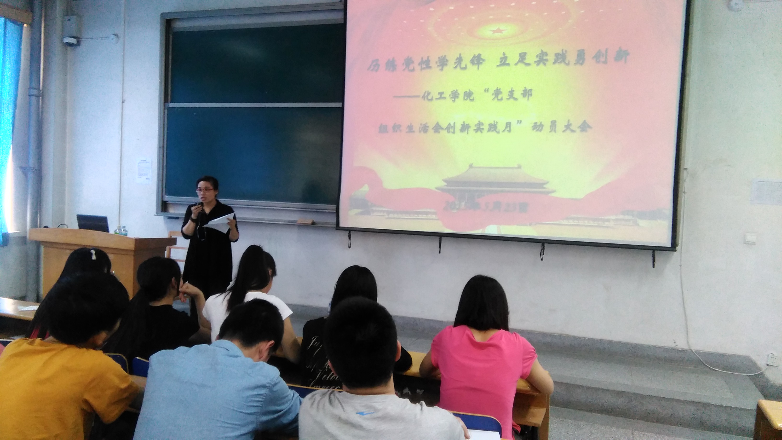 由化工学院本科生党支部联合申报的“历练党性学先锋,立足实践勇创新----化工学院党支部组织生活会创新实践月”获“兰州交通大学基层党建特色项目创新实践活动”立项。5月23日,学院党委启动了该项目。在启动仪式之后,开展了首次支部活动,邀请马克思主义学院冉福星老师进行《培育和践行社会主义核心价值观》的专题辅导。化工学院第四、第五、第六和第七党支部全体本科生党员参加了此次专题辅导。冉老师的精彩辅导,不仅让参会党员更全面系统地理解了社会主义核心价值观体系,对富强、民主、文明、和谐、自由、平等、公正、法治、爱国、敬业、诚信、友善这24字有了深刻的认识,同时对民主和自由有了更深刻的思考。广大党员青年深切体会到作为现时代的青年党员,坚持正确的思想引领的重要性,社会主义核心价值观需要每一个党员用实际行动去贯彻和落实。
