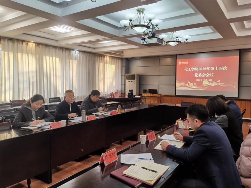 12月18日,化学化工学院在学术厅召开2025年第十五期党委理论学习中心组学习和第十四次党委会议。校党委副书记王爱平列席会议并指导,学院党委书记主持会议,全体院领导参加会议。