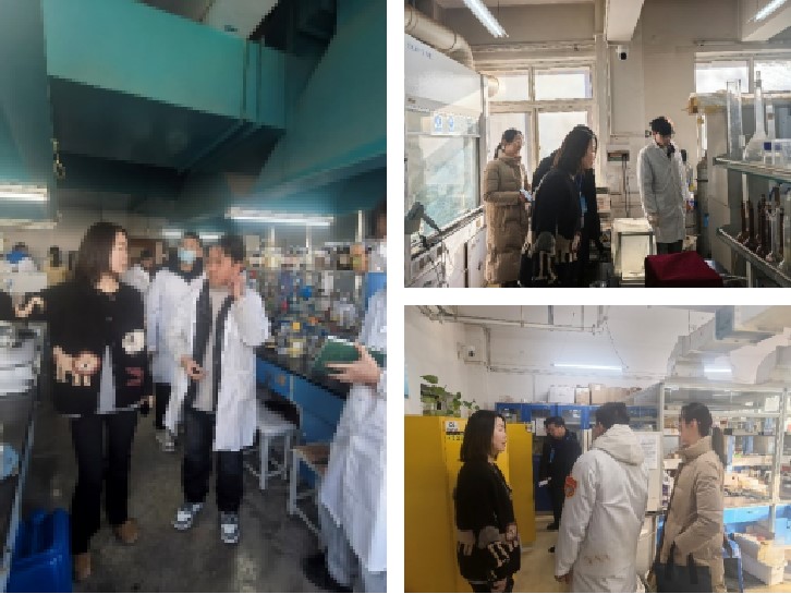 本次检查由学院副院长陶彩虹、安宁带队,实验室安全员何杰及 2 名实验室督查员组成专项检查组,对全院所有教学、科研实验室安全隐患进行了系统性、地毯式排查。检查重点聚焦安全管理关键环节和要害部位,一是水电安全,全面核查供电线路是否老化破损、接线是否规范,供水设施是否存在跑冒滴漏;二是压力容器运行,检查设备是否定期校验、安全阀是否灵敏有效、操作记录是否完整规范;三是危险化学品管理,重点查看化学品分类存放、标识标签、上锁保管、领用登记及废弃处置等环节是否符合规范要求;四是个人防护与应急保障,核查防护装备配备是否齐全有效、消防通道是否畅通、应急器材是否完好可用;同时对实验室环境卫生、仪器设备摆放、贵重物品保管等情况也进行了细致检查。